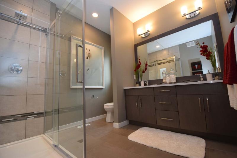 "It comes with a five-foot frameless glass enclosure and tile surround plus tile floor and Thunder maple vanity with quartz countertop and dual sinks," he says. "A big walk-in closet with tons of built-in storage finishes it off perfectly. It’s a true retreat — secluded, quiet and well-appointed."