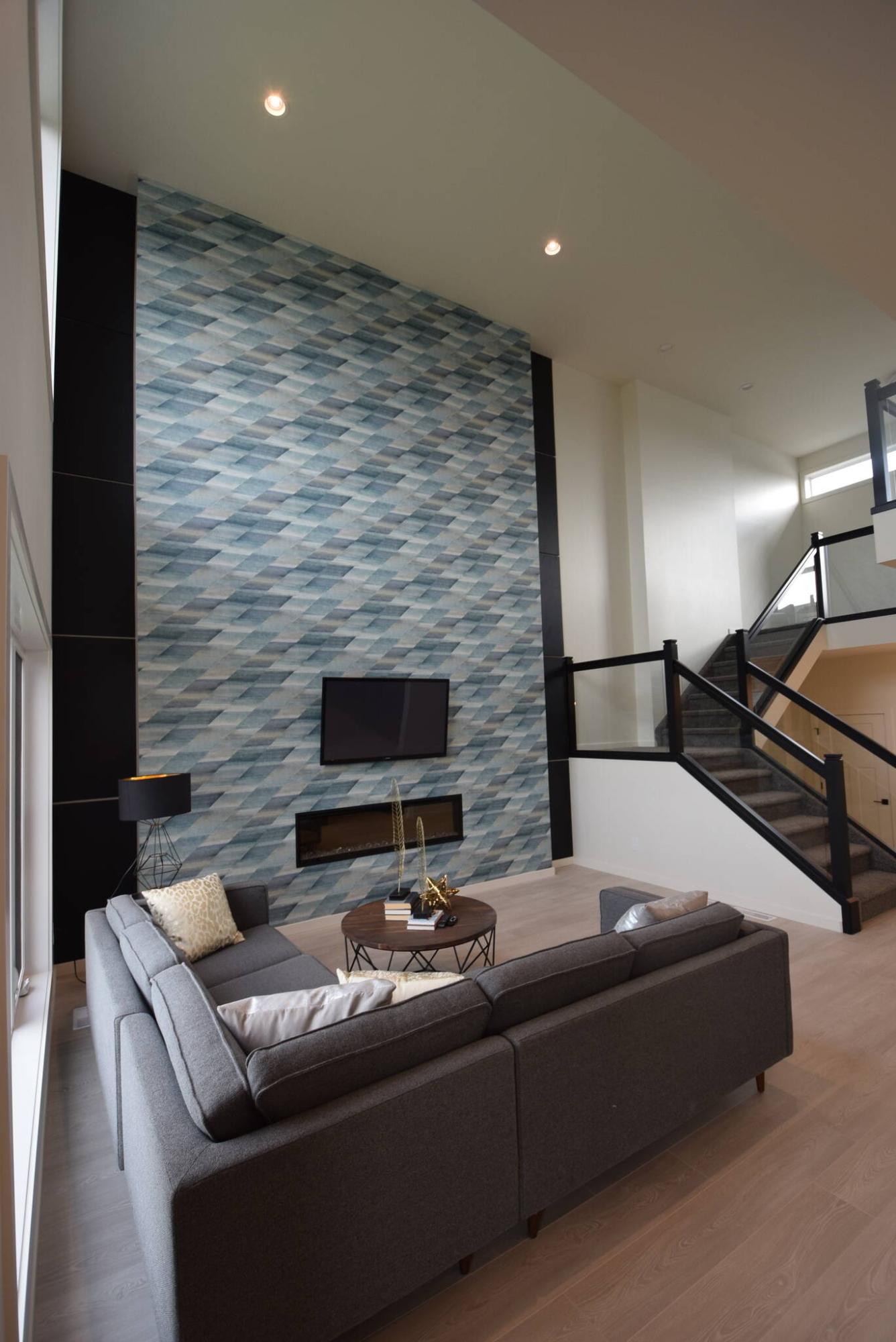“They wrapped the feature wall with a cool blue, grey and white print wall that provides quite the backdrop for the TV and linear electric fireplace,” he says. “Pretty much everyone — I’d say about seven out of every 10 people that viewed the home — like it because it’s different, and so creative.”