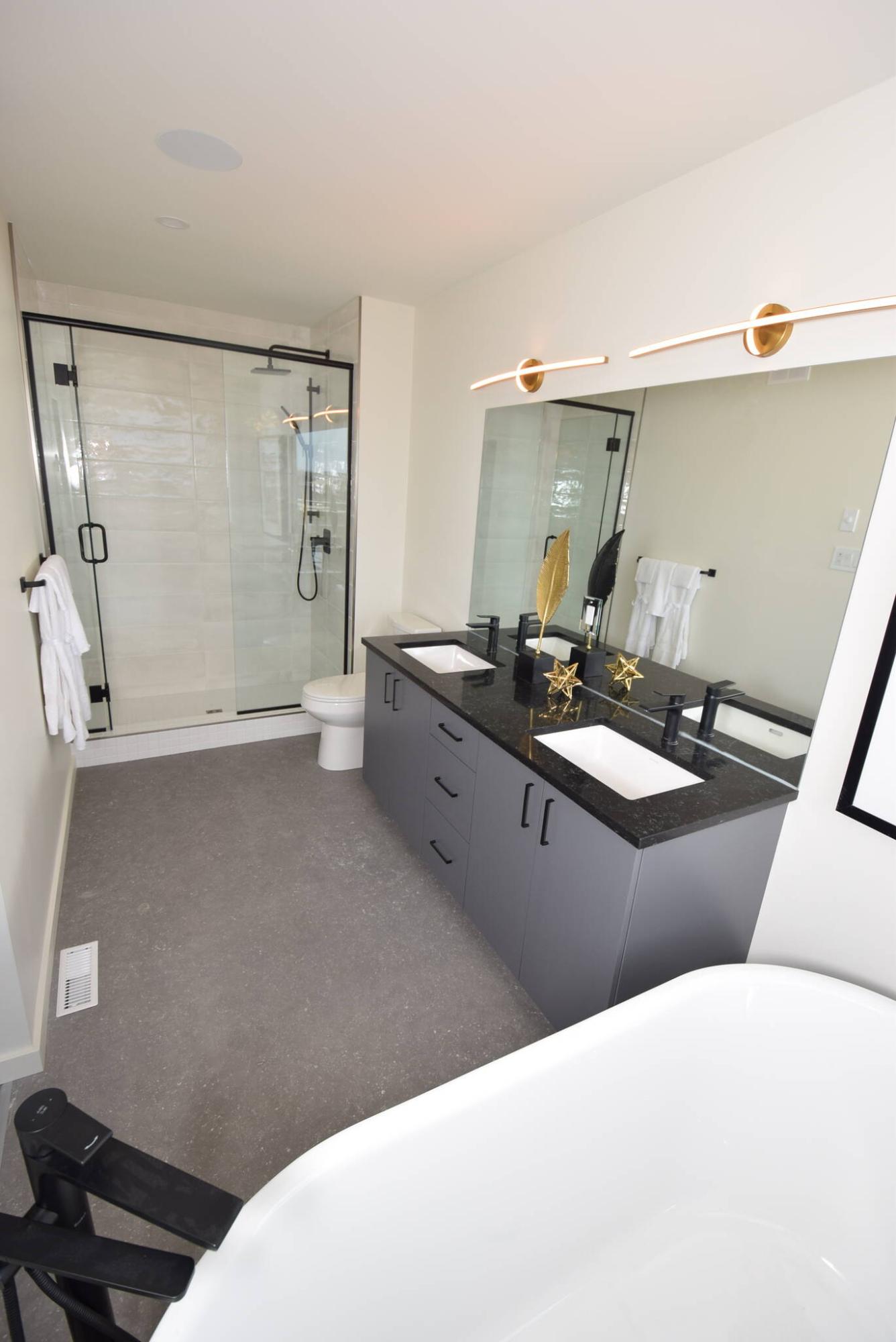 “It’s just spectacular,” he says. “A huge window on its rear wall allows lots of natural light to fill the space, and there’s lots of room for a king-sized bed and all the furniture you need to fill it out. The deluxe ensuite is wired for sound, and comes with a free-standing soaker tub, walk-in shower with a gorgeous tile surround and floating vanity with dual sinks.”