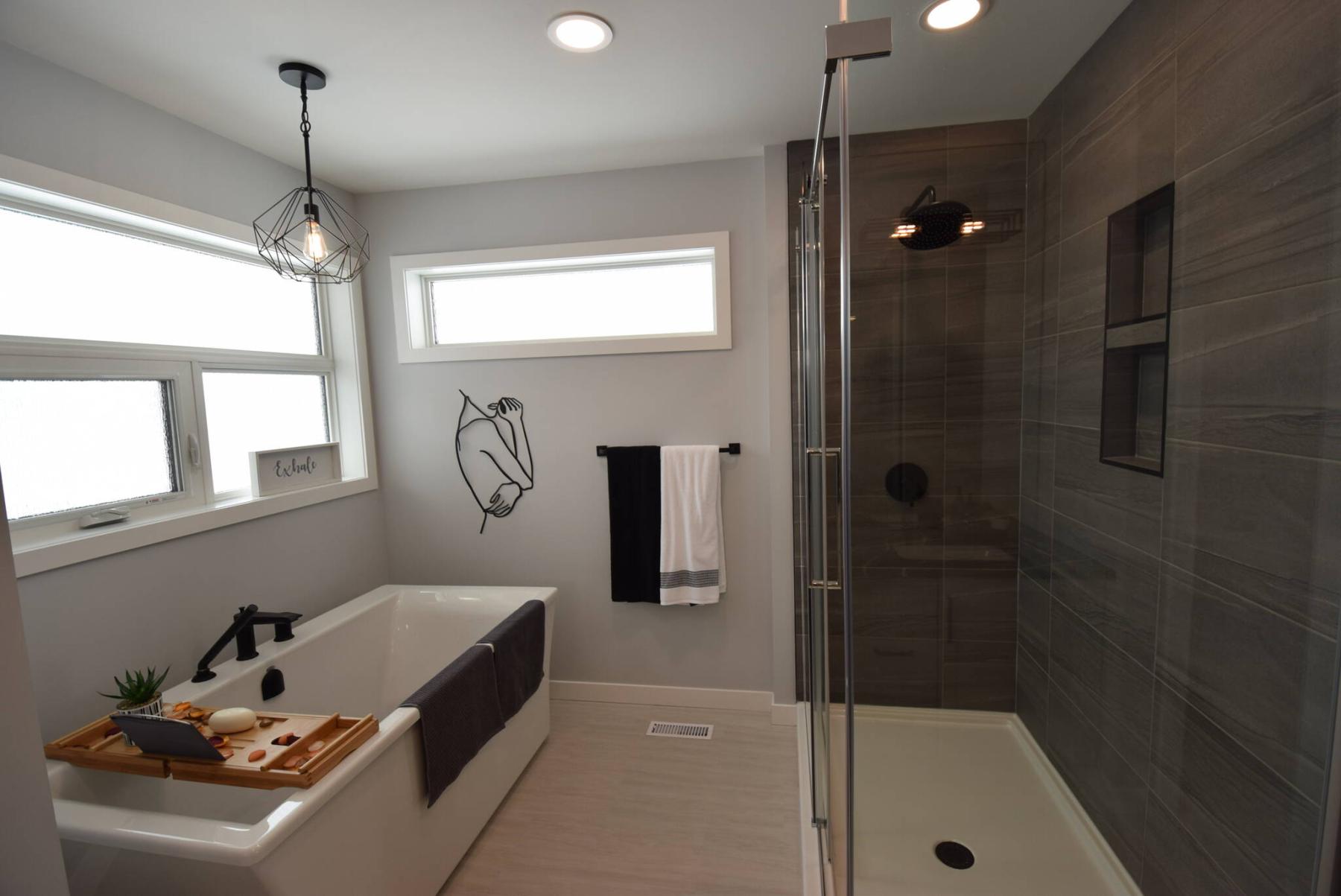 “It’s a wonderfully private space that projects an air of luxury with all its space, natural light and calming colours,” he says. “It offers a big walk-in closet with windows and plenty of built-in storage and a spa-like ensuite with a gorgeous walk-in shower with tile surround and free-standing soaker tub next to a huge window with a transom window on the opposite wall.”