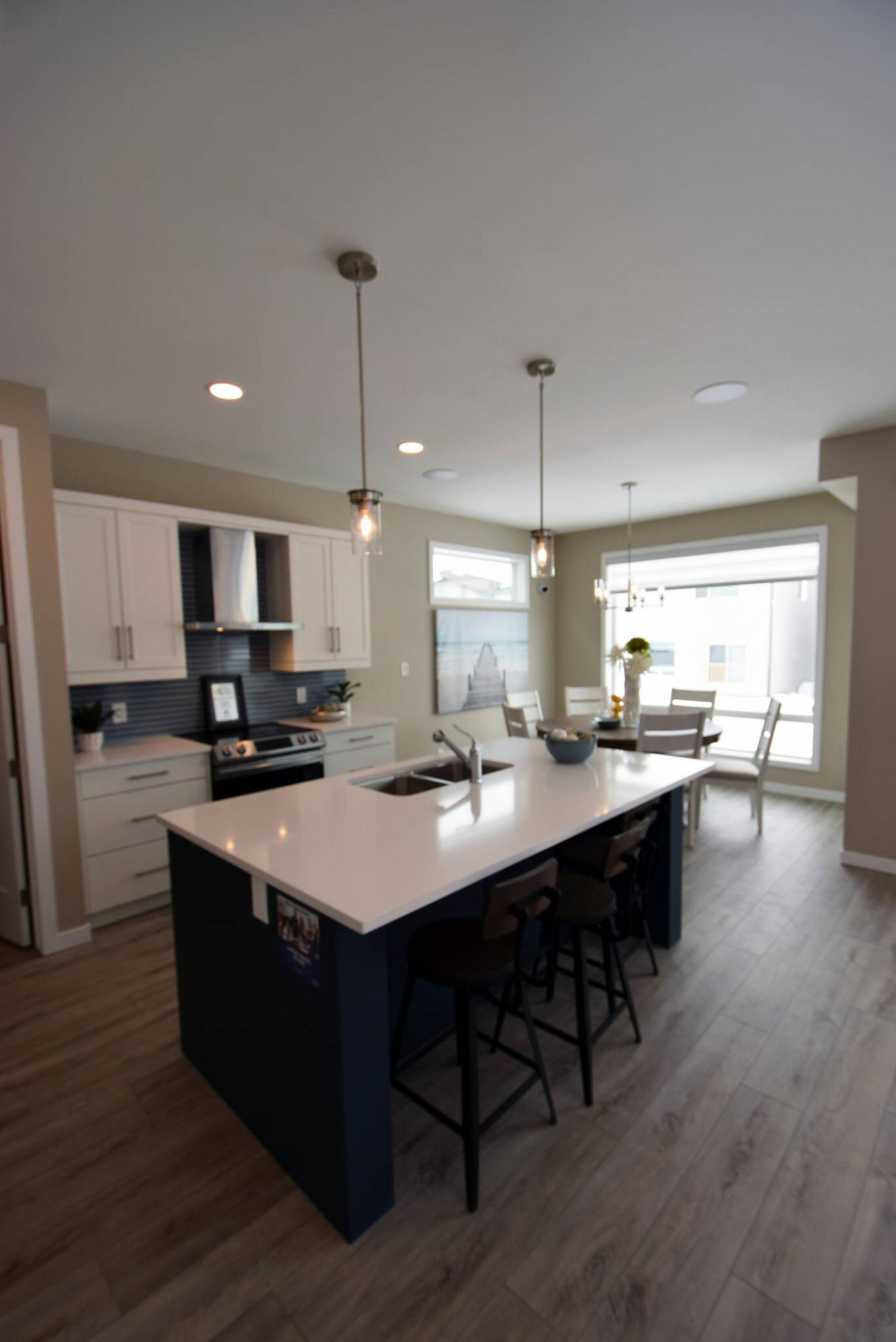 Centred around a large island, the kitchen in this Transcona two-storey is filled with function and surrounded by a nice combination of finishes.