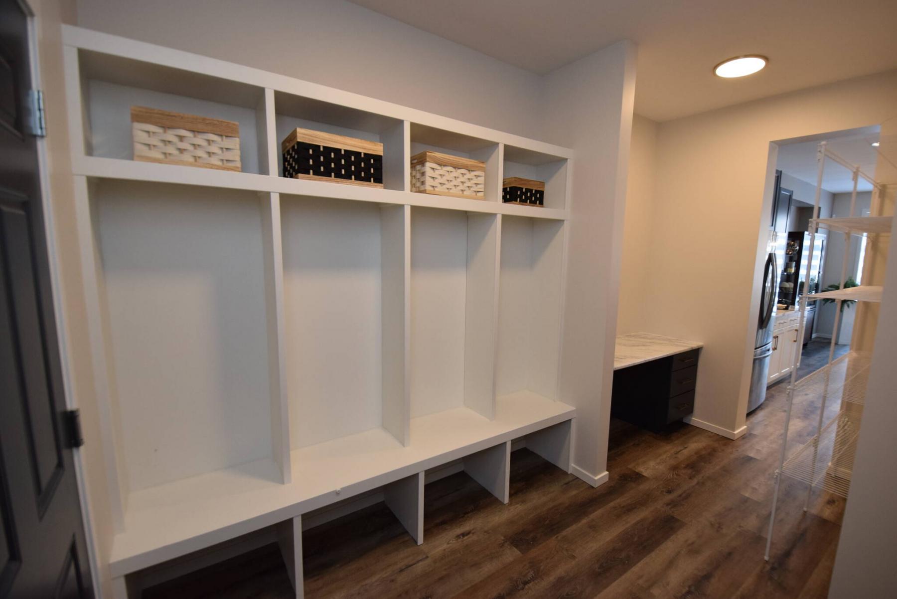 An expanded mudroom offers plenty of room to move and an optional cubbie locker for added storage.