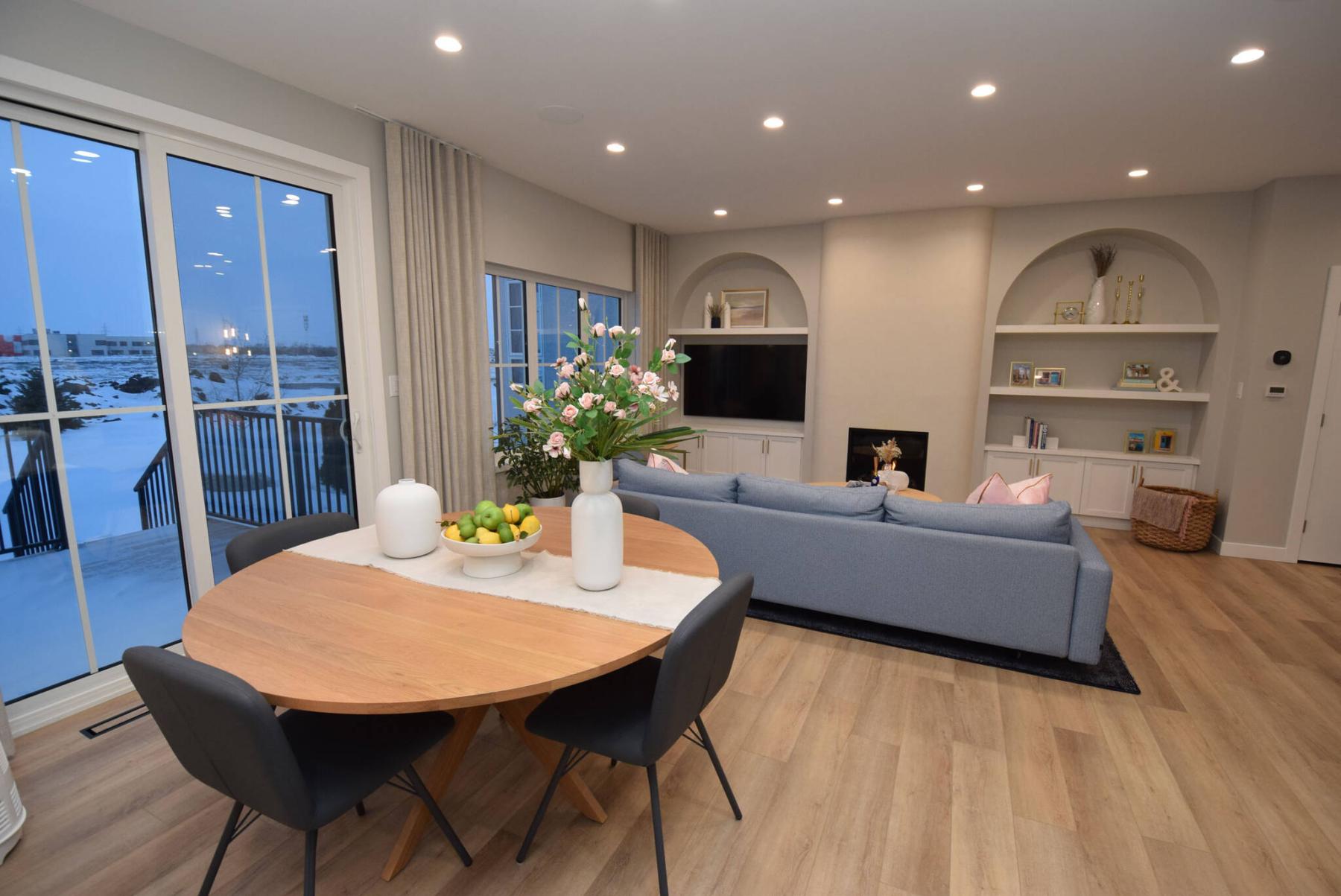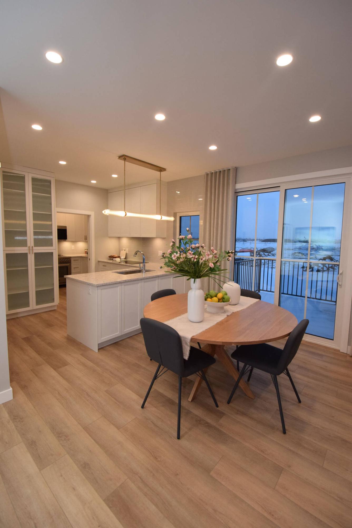 Style and functionality combine seamlessly in the kitchen/dining area in Maric Homes’ two-storey Sage Creek dwelling.