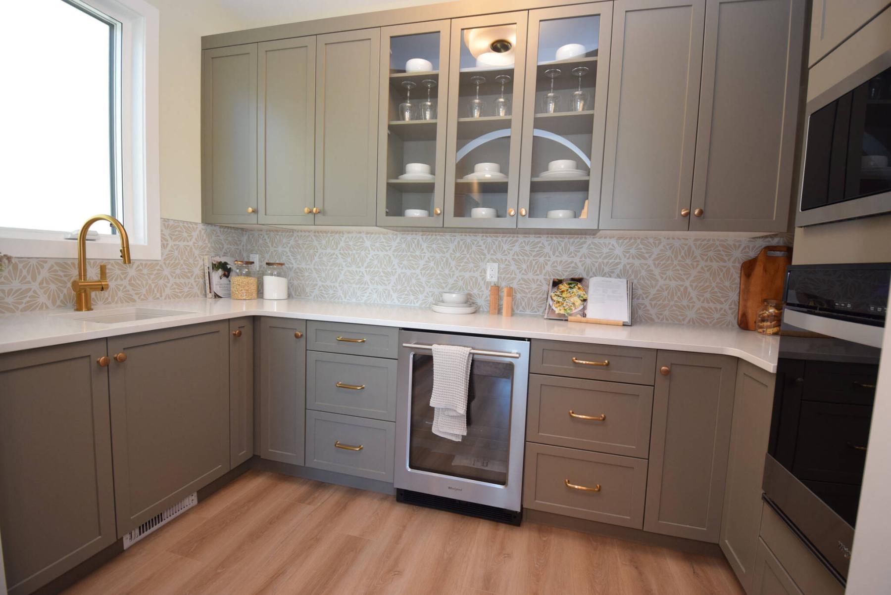 “They went with an arched doorway that does two things,” says Ranson. “First, it looks amazing and adds a wonderful touch of style to the kitchen. Second, it’s extra-wide, which makes it so much easier to go back and forth between it and the gorgeous kitchen. It also has a wall oven, a sink, more cabinets, a wine fridge and a window that lets in lots of natural light.”