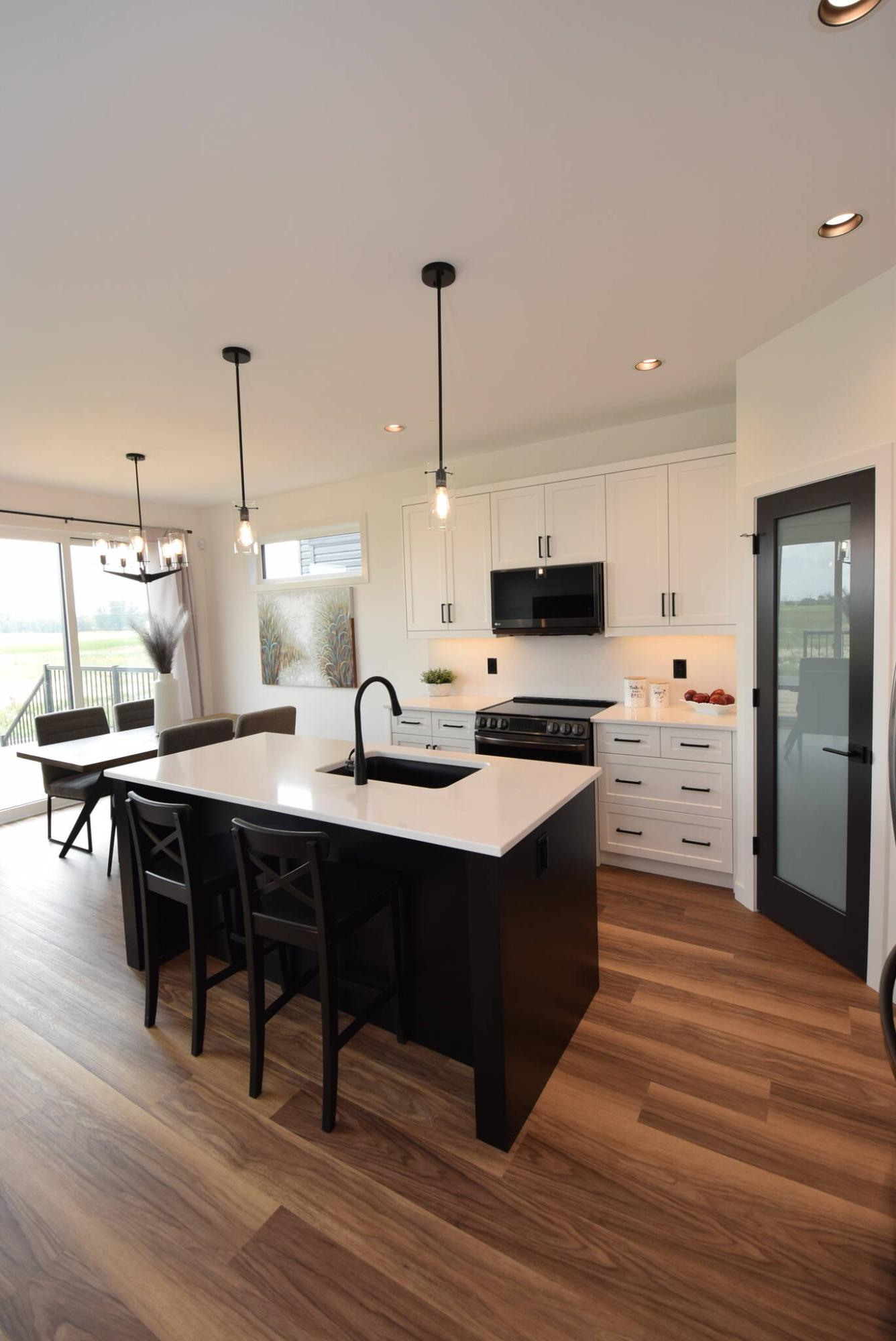 “I’d say the area’s balanced design is matched perfectly by its finishes. Vinyl plank flooring is standard, as are soft-close cabinets, pretty much all the lights and a corner pantry. The white cabinets are complemented perfectly by earth tones that create warmth and variation.”