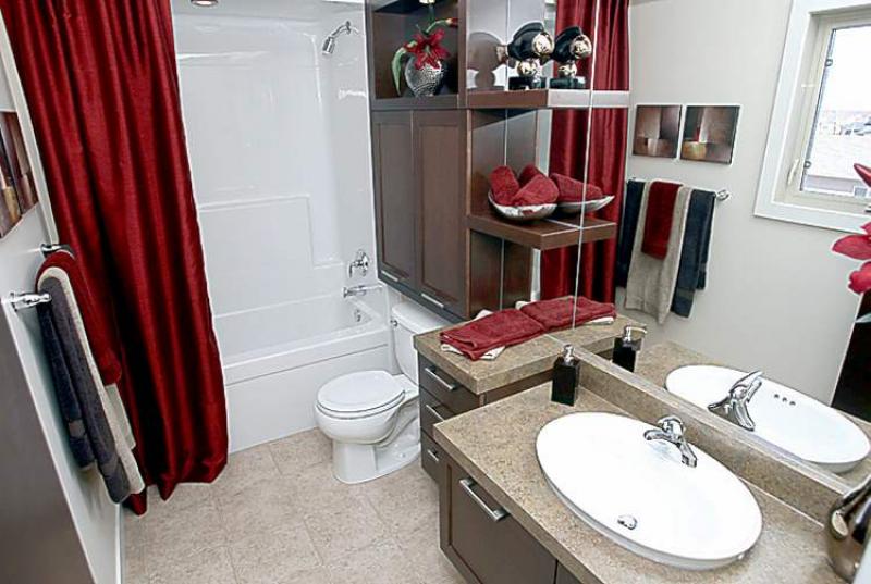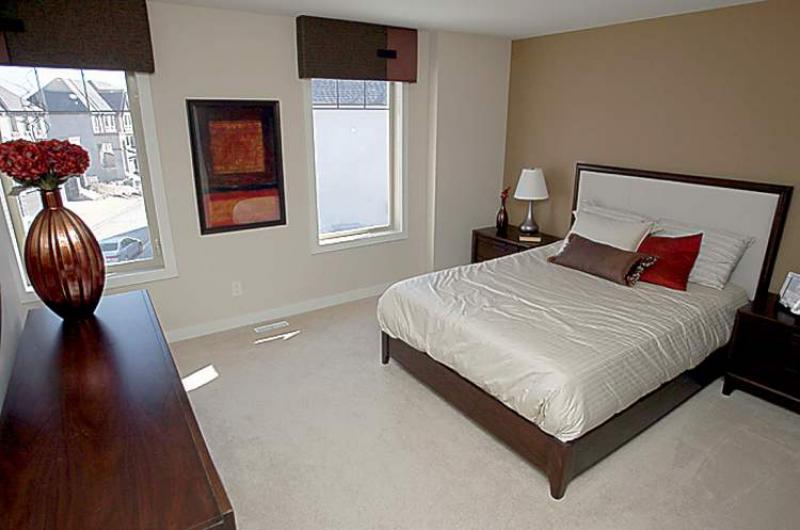 "Both are about the same size," Loewen said. "The second bedroom is a bit smaller than the master suite, but still comes equipped with a three-piece ensuite (with shower) and a double closet. The master suite has a four-piece ensuite with soaker tub and maple cabinetry with floating shelving (with inset potlights above) -- and a large walk-in closet. A big window also gives you a view of the lake across the way."
