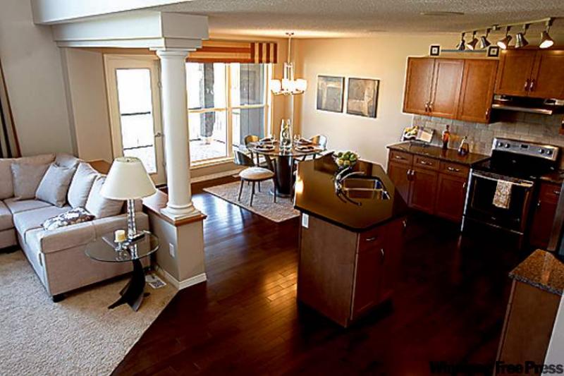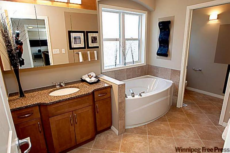 "The master bedroom is huge, with three big windows that let in all kinds of natural light," he said. "The ensuite is beautifully finished with a tan duraceramic (tile) floor, quartz countertops, maple vanity and oval soaker tub (set in tan tile beneath a huge obscured glass windows) -- and a separate shower. There's also a big walk-in closet (off the bedroom) with all kinds of built-in racks. It's a well-laid-out space."