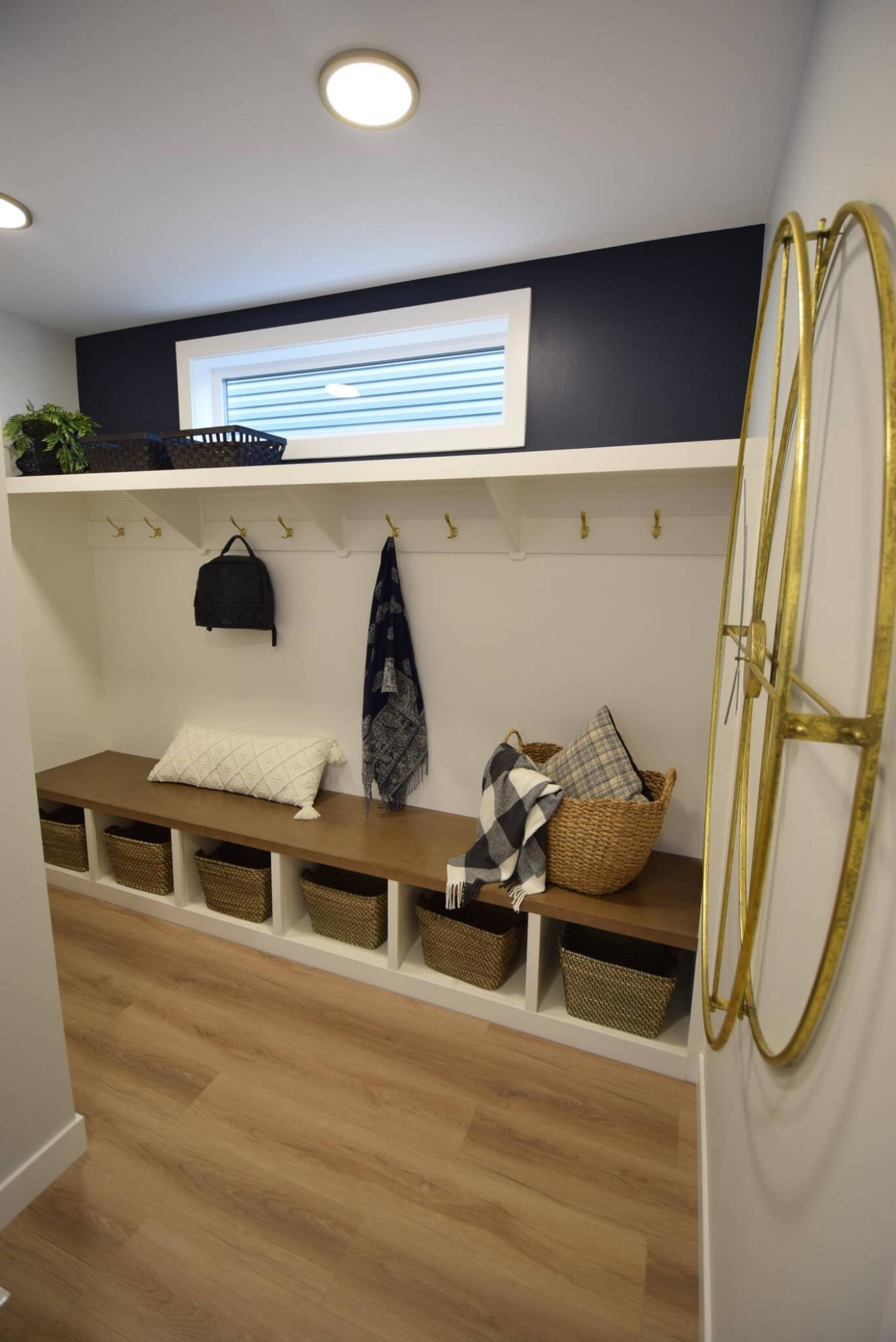 The stylish mudroom can be kept as is, or turned into a main floor bedroom.