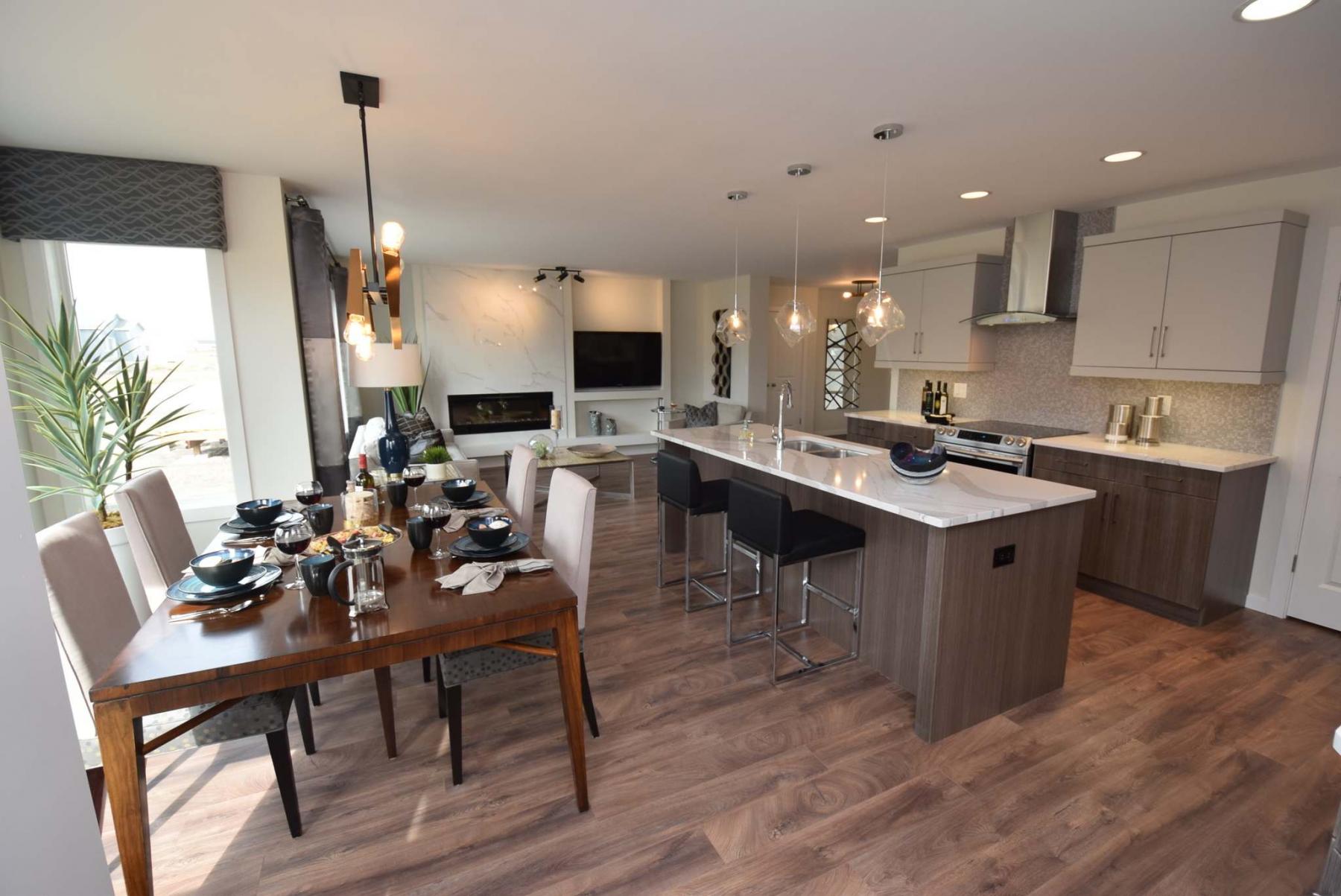 "While the show-home price with upgrades is $492,500, we can get a family on a budget into the home for $412,900 with standard finishes and a few options," Curtis says. "Not only is the Kayla a sharp design, its price point is pretty sharp, too."
