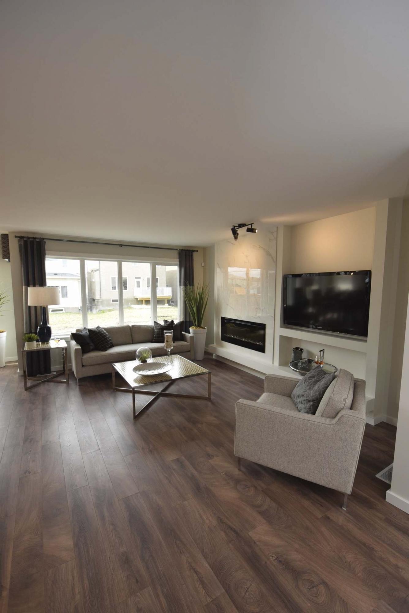 Lots of natural light flows into the home’s great room through the over-sized windows, making it feel spacious and inviting.