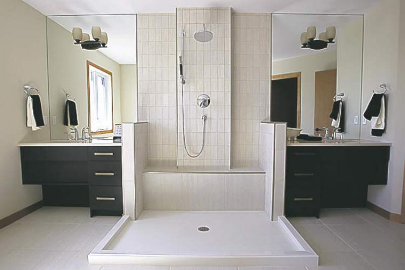 "It's fronted by maple doors with frosted centres. The focal point is a huge, custom-tiled shower for two that features charcoal maple vanities with tan quartz countertops on either side," said Archambault. "There's also a big window to view the lake through, beige tile floor and a good-sized walk-in closet."