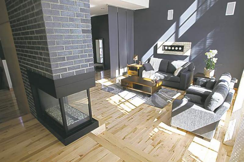 "That's because the home features an abundance of windows," said Archambault. "The room that amplifies that theme is the living room, which has floor-to-ceiling windows on its back wall. Because they stretch almost to the top of the 19-foot ceiling, all kinds of light flood in. When people walk in, they see the windows at the back, along with the view of the lake and the gorgeous maple floor, and go 'wow!' They also love the three-sided (grey brick) natural gas fireplace, too."