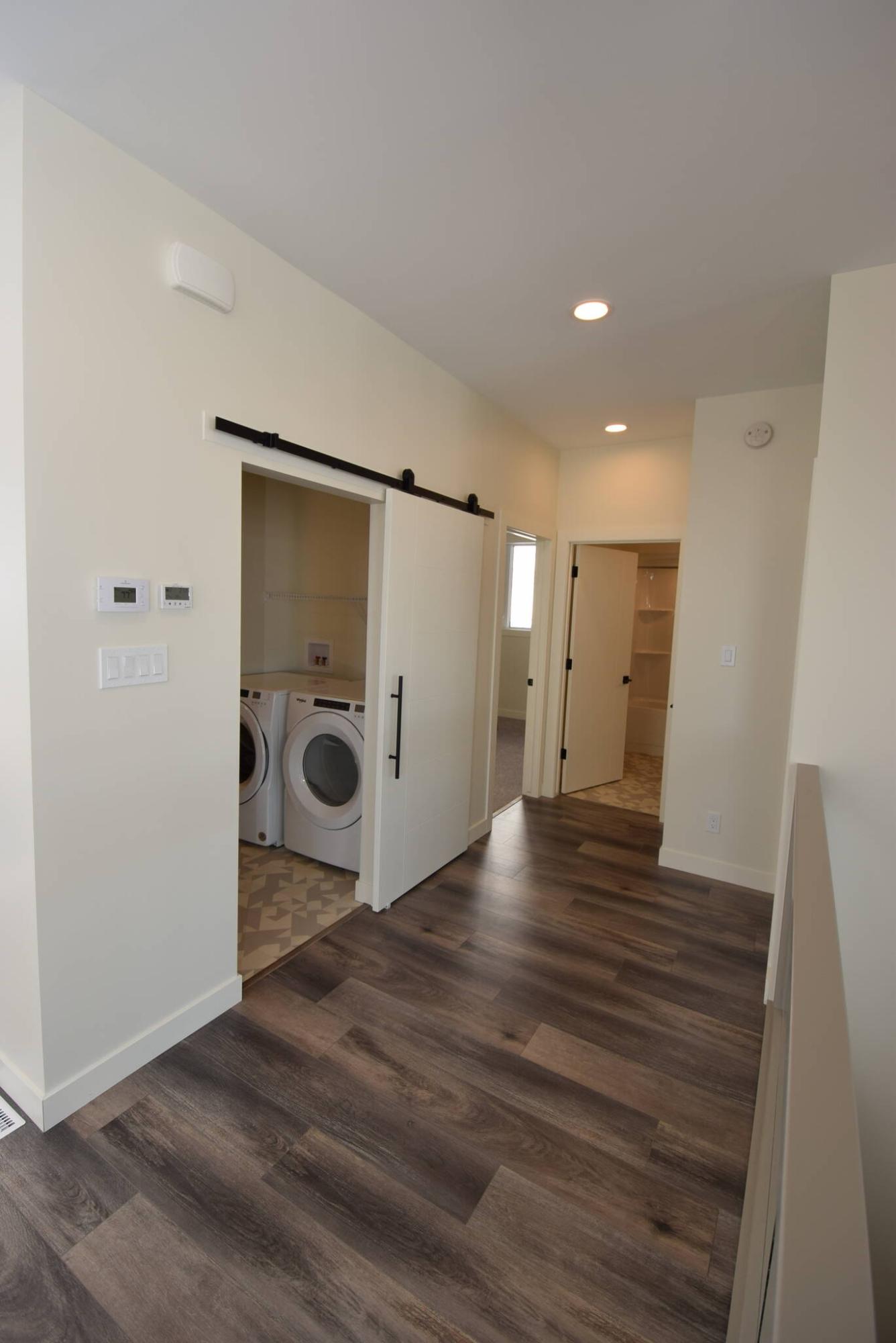 “Both secondary bedrooms are at the front of the home to the left of the foyer along with a hue laundry/mudroom and four-piece bath. There’s also an office to the right of the foyer that’s defined perfectly by a one-third wall with a cappuccino vertical slat wall on top that goes all the way up to the ceiling.”