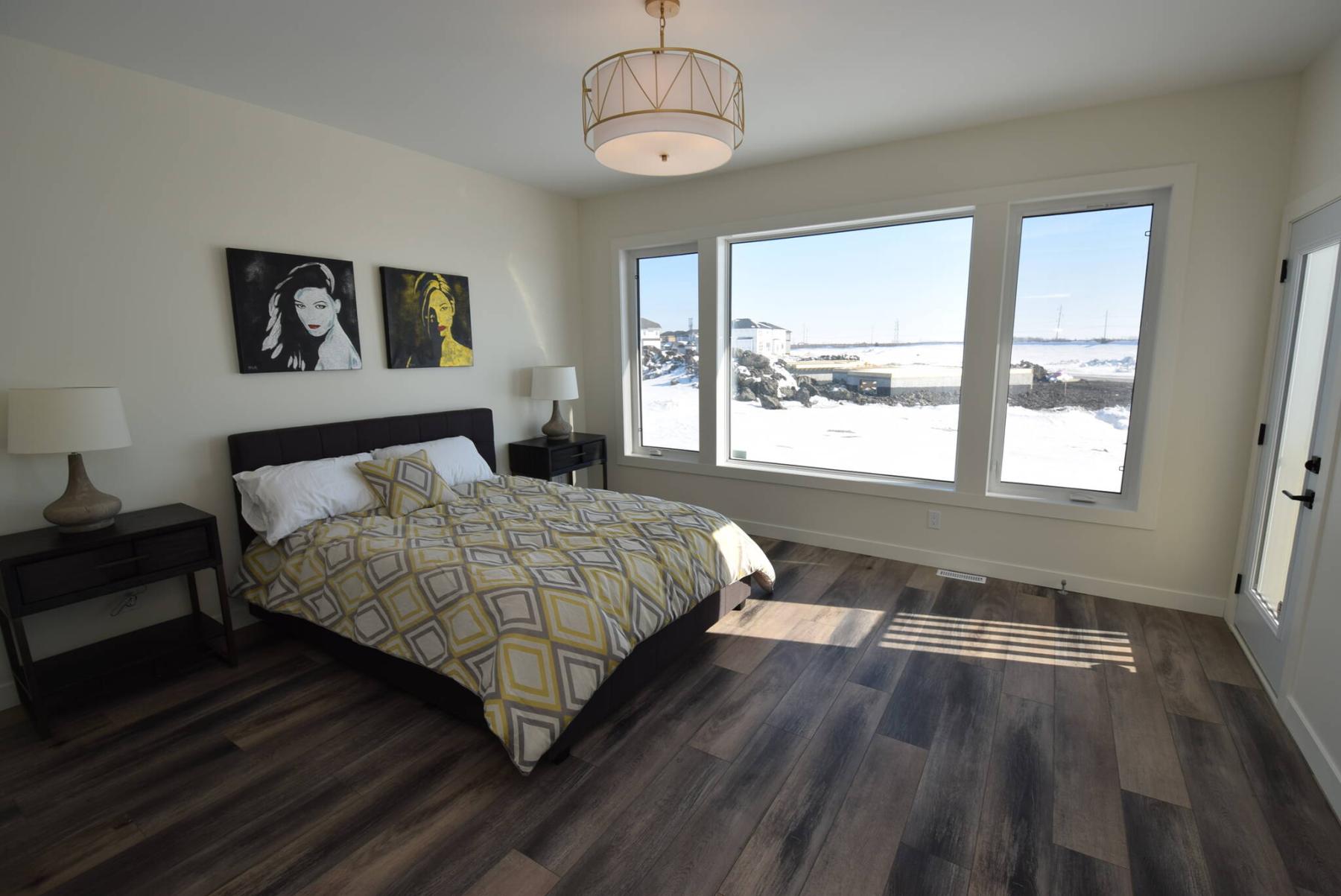 Natural light pours into the spacious yet cosy primary bedroom through a three-piece window on its rear wall and patio door on the side wall that would link it neatly to a backyard deck. (Todd Lewys / Winnipeg Free Press)