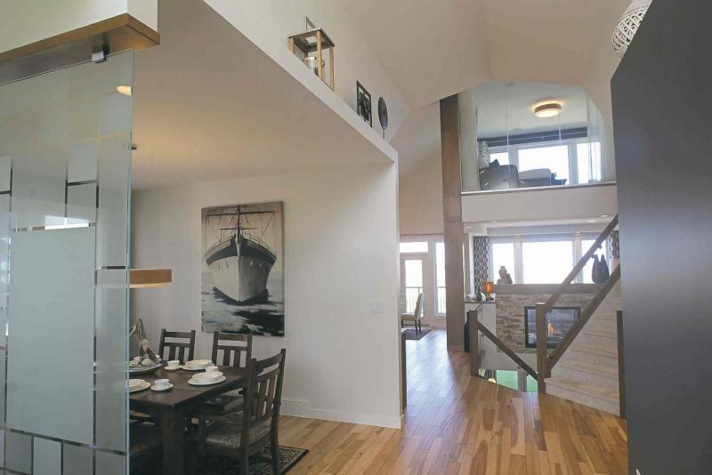 The home's efficient yet elegant design carries over into its bedroom wing, which is preceded by the master suite, making it a space that's set off in a serene world of its own. "Again, because it's at the rear of the home, it's all about the wetland view (which is framed perfectly by a large picture window)," said Milne. "We didn't go overboard with the bedroom. It's a nice size, but not overly huge. That left more space for a big walk-in closet, and wonderful ensuite." With its dark brown cork floor, corner soaker tub, six-foot tempered glass/tile shower and floating maple vanity, it's a space that, immediately upon entry, brings your stress level down a notch or three. "It's a soothing, relaxing retreat that was designed specifically to be a tranquil spa," he said. "If you need rest, you'll find it there."