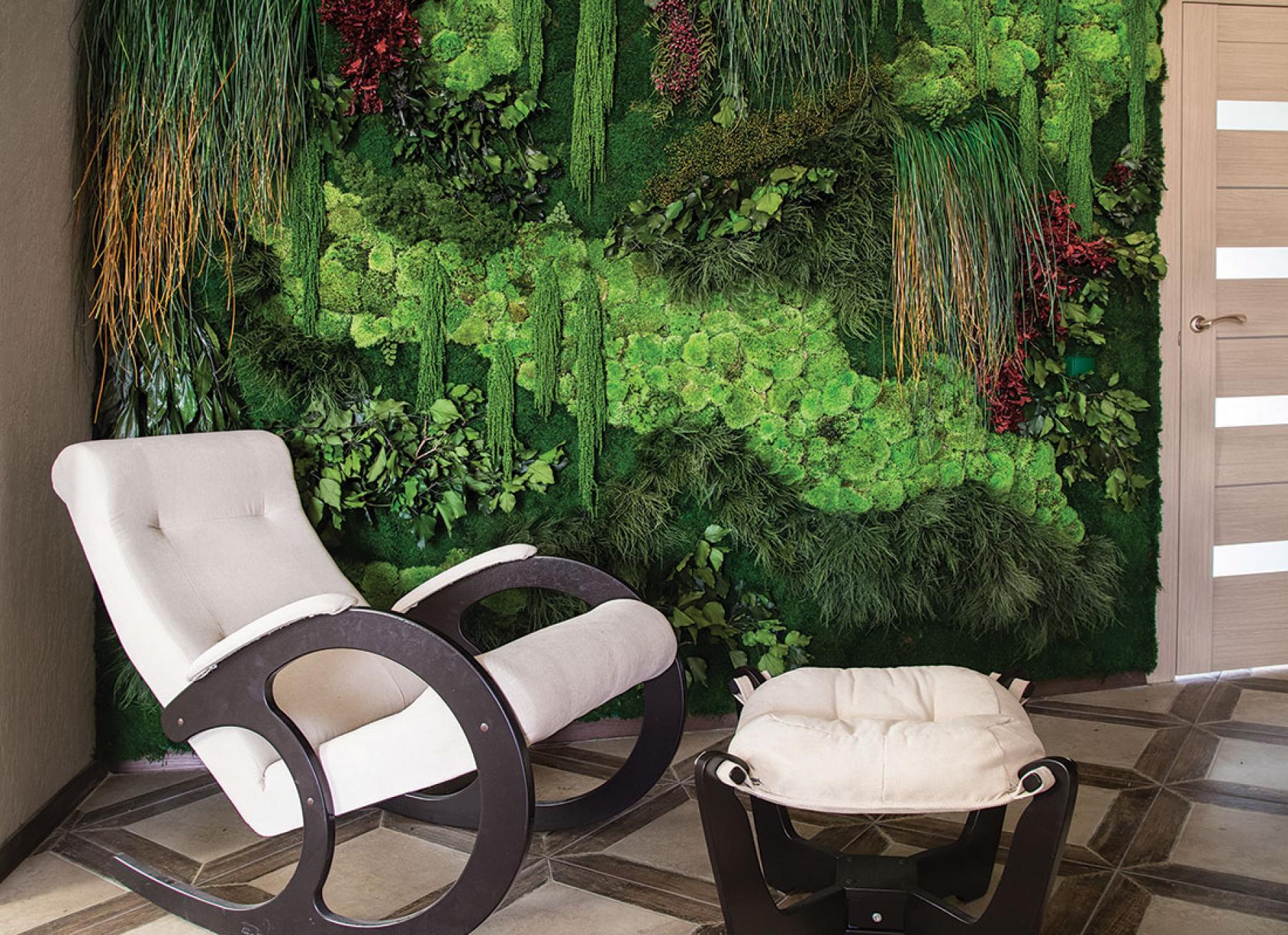 Interior landscaping can also help reduce ambient noise and create an overall sense of calm — in particular, some of Bouchier's more expansive products, such as custom green and living walls comprised of rows of different plant varieties, and decorative wall installations made of moss and foliage that's been preserved with glycerine.
