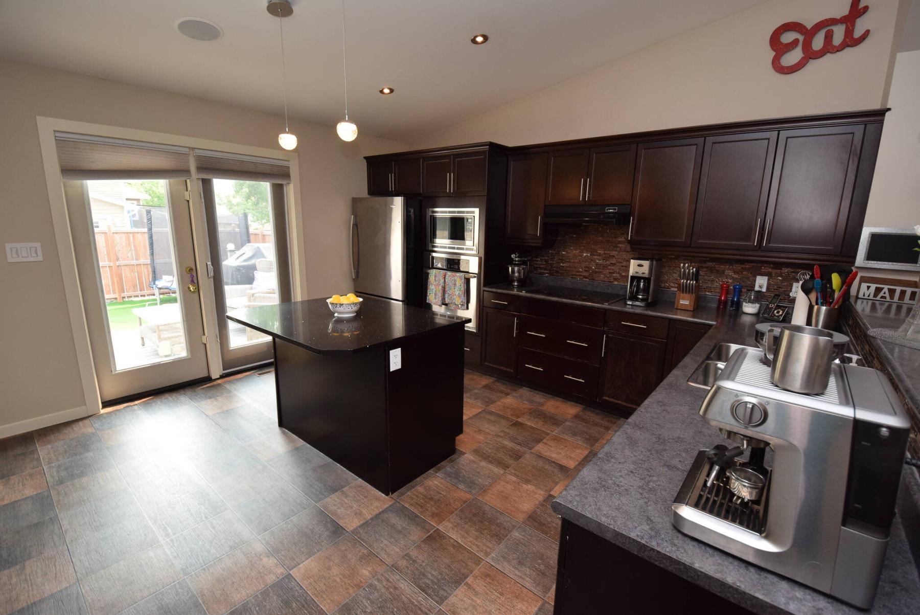 The kitchen itself is huge, offering a compact island, a wealth of espresso-stained maple cabinets and plenty of counter space.