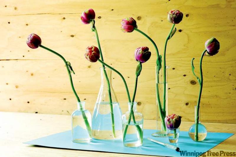 If you have a collection of decanters, fill each halfway with water, then add a single stem -- say a delphinium, or maybe a Japanese maple branch -- and set them in a line down the centre of the dining-room table, suggested stylist Eddie Ross.