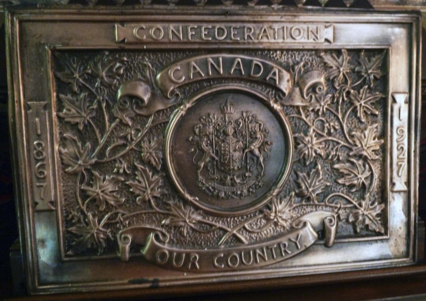 However, I’m just about to frame and hang a very wall worthy artifact I’ve had sitting around for years, acquired who knows where, which of late I’ve been stepping over on the garage floor. Some of you may remember the old copper plaques celebrating the 60th anniversary of confederation, the years 1867 to 1927. They adorned many of the older school walls if I remember correctly.