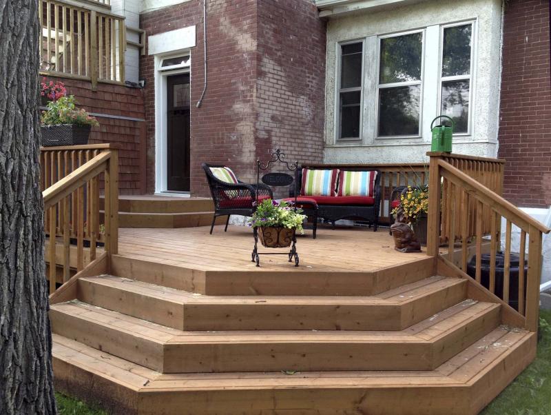 I built a small backyard porch deck for Rena Semenko a few weeks ago, which mimics the front porch I previously built for her, and was showcased in a May 2017 Reno Boss column titled "Making A Great First Impression." Much like Singh’s scenario, a window in Semenko’s master bedroom was removed, and the remaining wall was breached to provide a rough opening to satisfy a double patio door that swings outward. With the door on-site, measurements were confirmed and the breach began. An older home once again, the interior plaster wall, metal lath and wooden strips were cut and carefully removed. Once the stud cavity was revealed, I then cut away the exterior stucco in the same fashion. The old window unit was dislodged and the remaining framework below was removed. The double door was set into place with the help of Singh’s son Ethan and fastened to the existing framing. With luck again on our side, the width of the new door matched the width of the original window, allowing the existing ledger to remain intact, thus minimizing wall-breach intrusion. The original window did, however, sit slightly higher than the new door. This simply required additional framing above the door and some creative trim work to fill the void. With the highly anticipated backyard access from her bedroom onto a new back porch deck, Singh recently commented "I love it!" She intends to paint the exterior door and trim herself — the colour combination has yet to be determined.