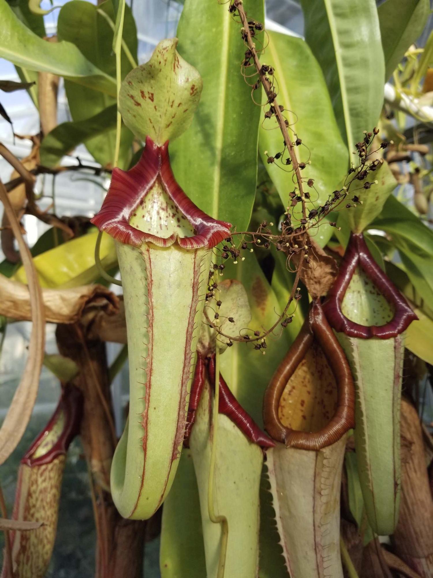 The carnivorous plant collection at Buller Greenhouse includes spectacular Nepenthes hybrids, Sarracenia species and hybrids, Drosera sundews, butterwort, Venus flytraps, Cephalotus, Byblis, as well as other species. Many of the Drosera sundews, Byblis, and Sarracenia plants have been grown from seed.