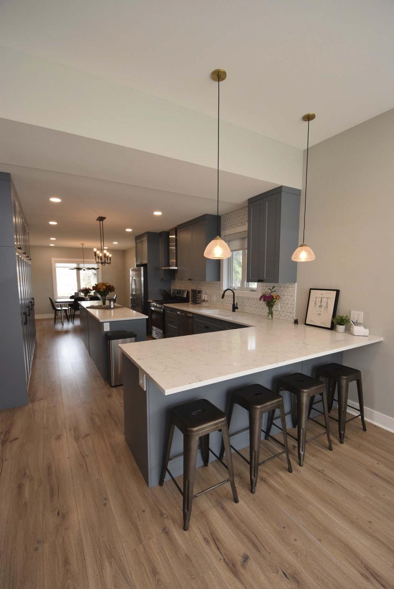 "It’s a beautiful, functional space that comes with a 10-foot island, additional peninsula with breakfast bar, quartz countertops, grey soft close cabinets, a gorgeous tile backsplash and stainless steel appliances. There’s also a pantry that offers tons of storage space."