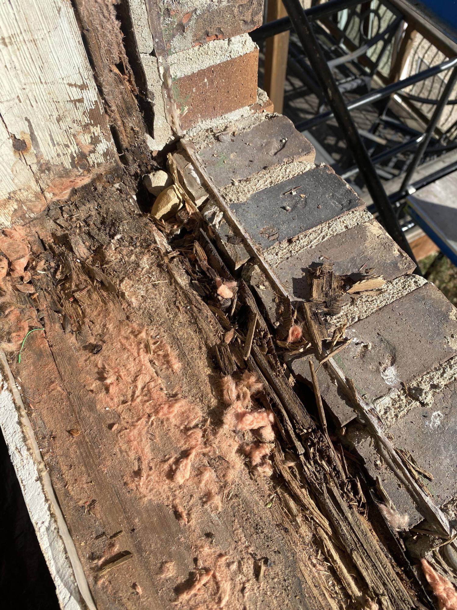 As such, I contacted Rob Moreau at Overcode Windows and Doors for an estimate early this past summer. During the visit, Moreau pointed out several areas of rot in my current wooden window frames that had been overlooked on the second floor. These frames had rotted through, allowing wind and rain to penetrate between the brick and the exterior plywood sheeting.