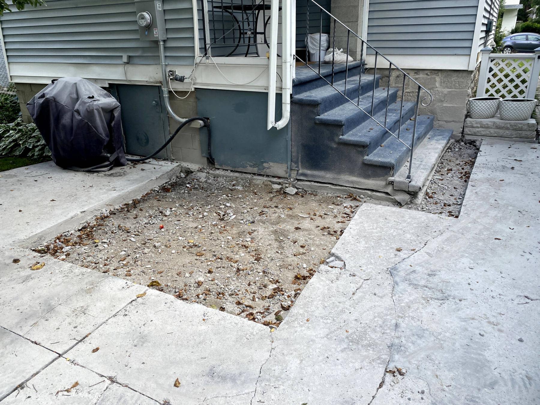 To ease the structural requirements of the build, old concrete was removed for the slightly expanded footprint of the impending deck and stairs.