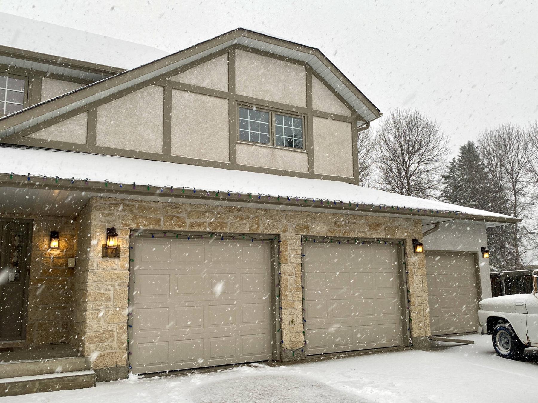 The final step involved the overhead doors. Initially, only the new stall would receive the required 9×7-foot door with operator. After a discussion with the homeowner, however, it was decided that the two existing overhead doors would also be replaced so all three would match. As such, an order for three 9×7 overhead doors was placed with Steven at Hanover Overhead Doors. In that the installation of the overhead doors was the final step of my involvement, it was an exciting prospect. When the day finally came, it quickly turned into disappointment. Unfortunately, we had all assumed the two existing overhead doors were the same size as the door for the new stall — but they were not. The old doors were 8×7. As such, only the door for the new stall could be installed that day. The good folks at Hanover Overhead Doors promptly returned the 9x7s, and ordered the required two 8x7s. Four weeks later (and two weeks sooner than expected), both 8×7 overheads arrived and were installed with new operators, as well as remote keypads for all three doors. The project was finally completed, with a hint of snow in the air.