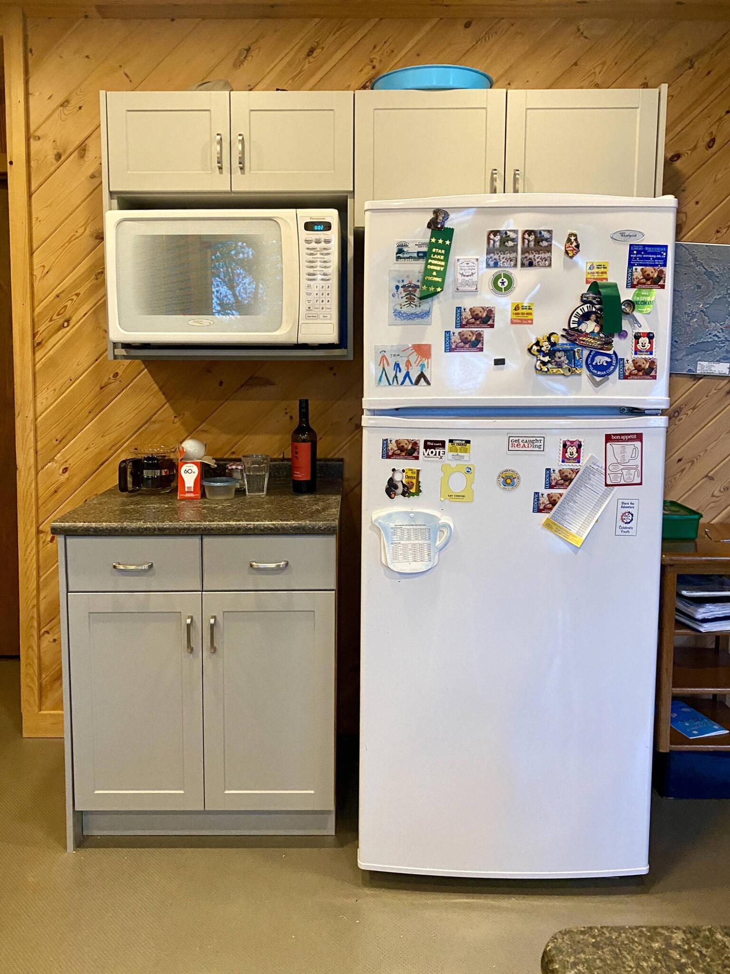 The cottage owners had gotten tired of their old woodgrain cabinet doors and drawers. Despite their disdain, the layout of their existing cupboards was familiar and functional, and would remain the same. In lieu of incurring the tremendous cost of total cupboards replacement, and upon my suggestion, the cottage owners opted to simply replace the doors and drawer fronts of their existing cupboards, drastically reducing the costs of both cabinet elements, and the time to perform the installation.