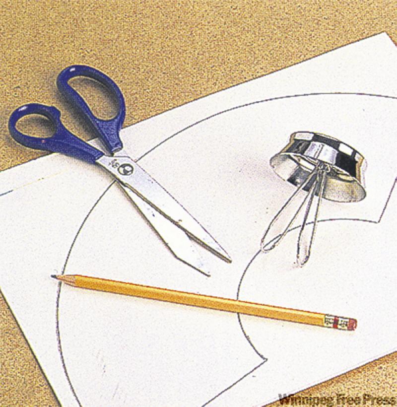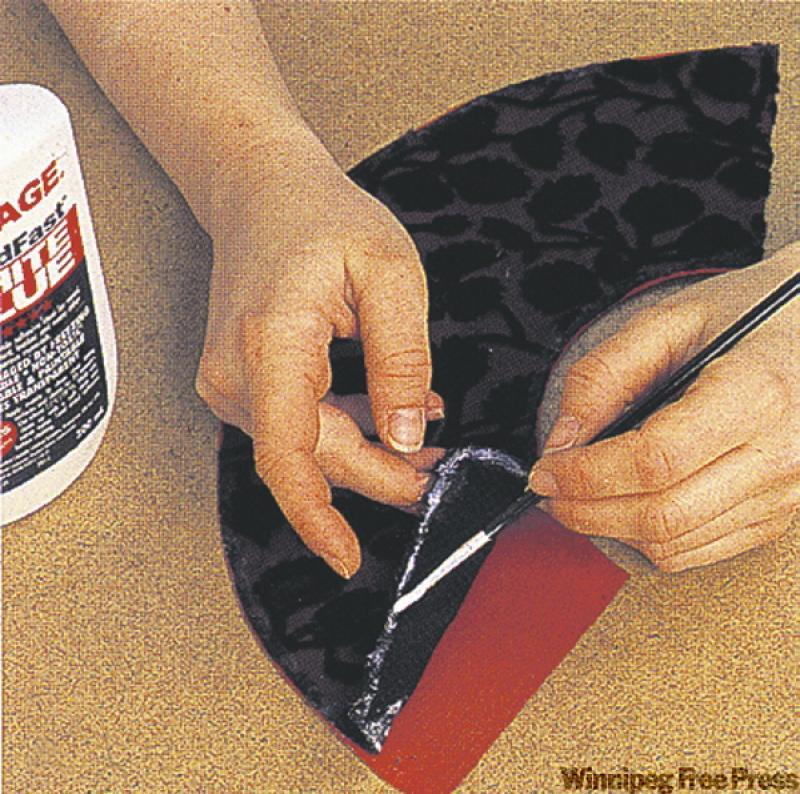If you are starting from scratch, draw a template from an existing shade. For the Spanish chandelier shown here I copied and cut six shade shapes from light poster board. The fabric I had chosen was sheer, so I painted the shades red with a semi-gloss sheen, cut the fabric using the template and added half an inch around the top and joining edge for turnover.