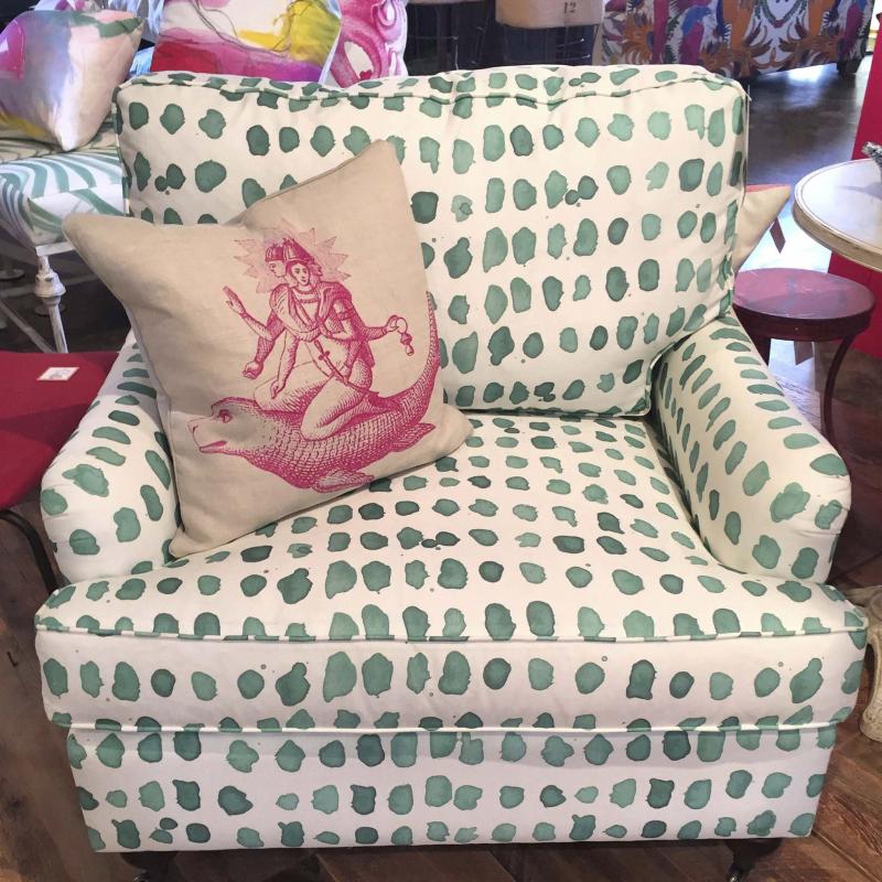Highland House's Morehead chair is upholstered head to toe in a splashy, colorful, painterly velvet from Italy.