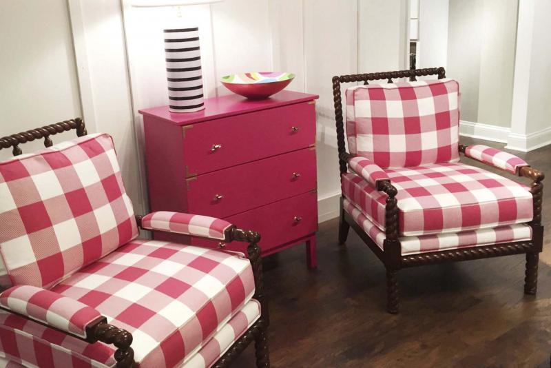 For her eponymous collection for the MT Company, she used a beefy buffalo check called Bon Air in raspberry to upholster its Parthie chairs. "It suggests a casual weekend vibe," she said.
