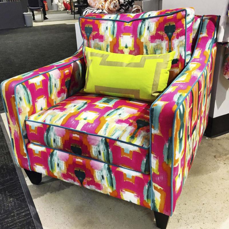 HIGH POINT, N.C. —You can’t help but sit up and take notice of today’s boldly upholstered chairs. A chair is just a place to plop until it’s dressed in the new, brighter solid and patterned fabrics that are lifting the profile of upholstery.