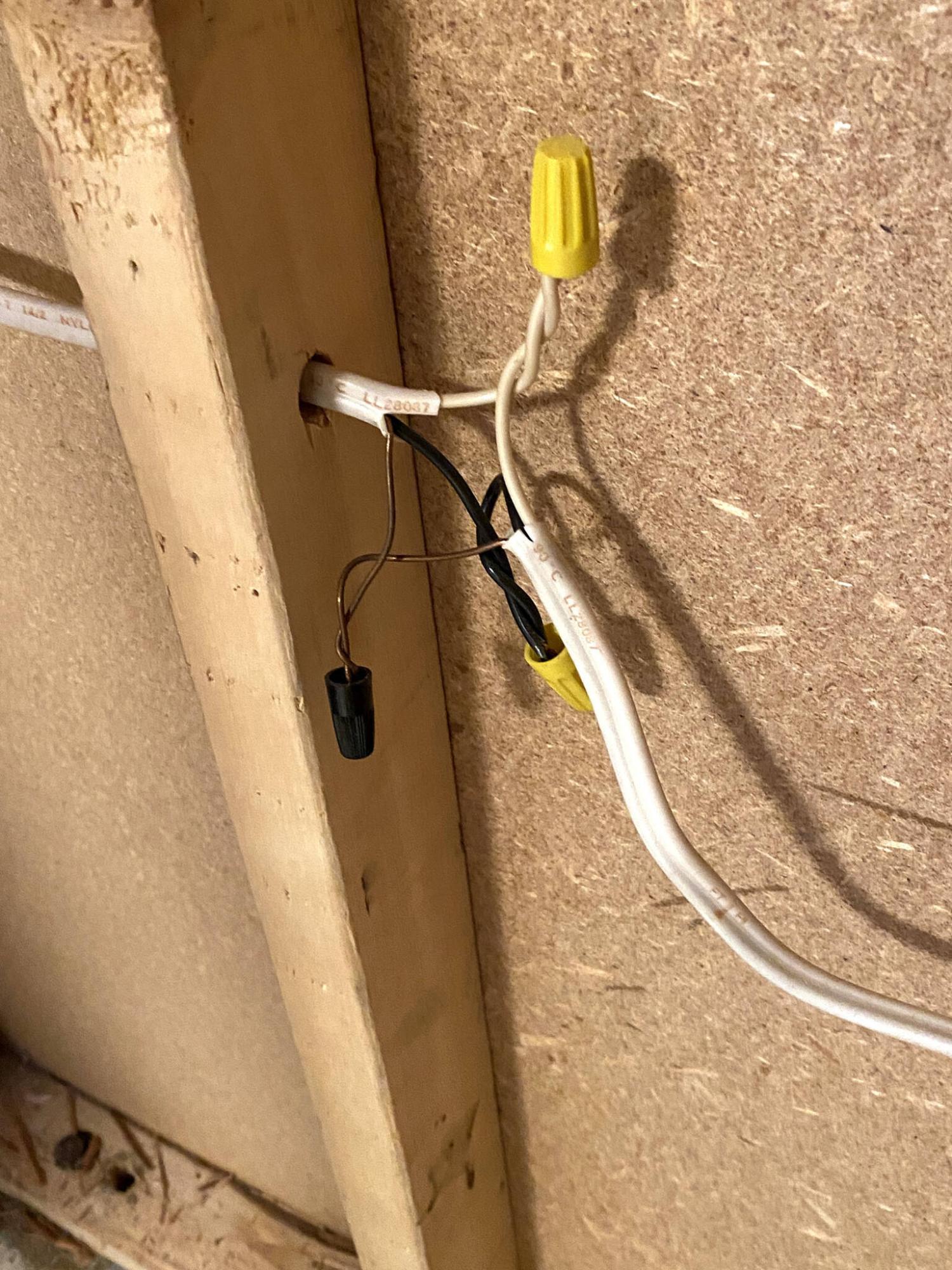 This live feed was one of three I discovered during the reno. The old electrical feeds were addressed by abandoning the lines altogether, or installing an outlet near where the live cut wire terminated. It was a scary find, one that could have caused serious damage to the house.