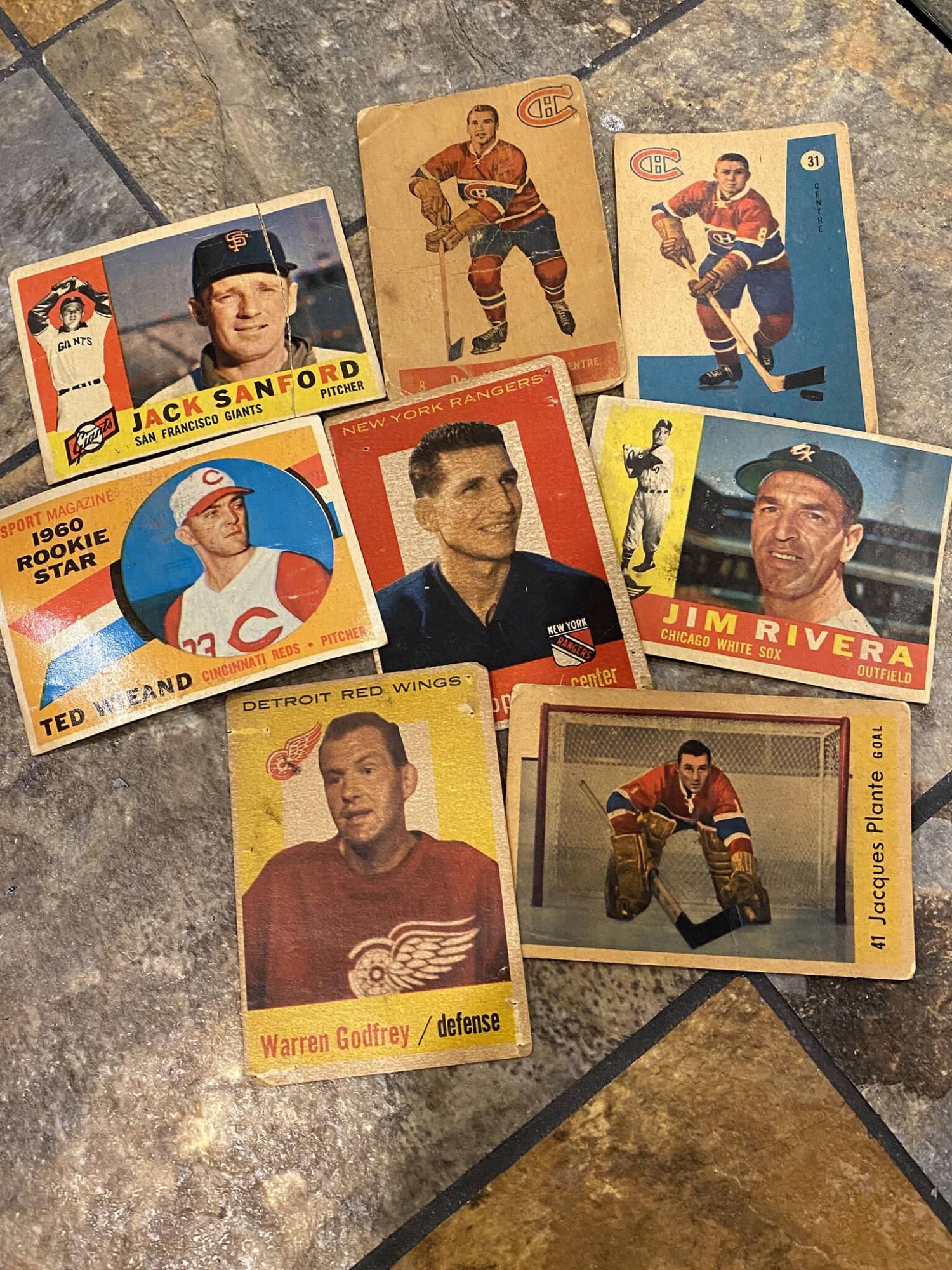 The most memorable discovery was a small collection of sports trading cards from the 1960s — baseball and hockey cards in various states.