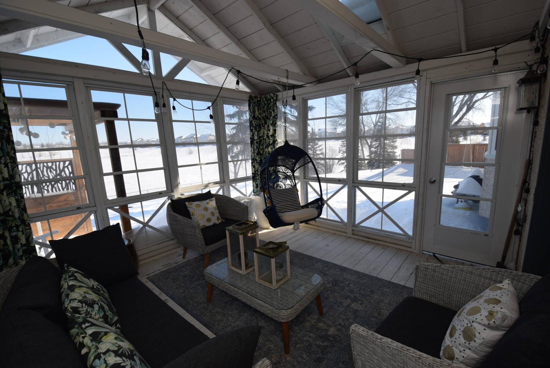 The lake view from the three-season sunroom is stunning in both winter or summer.