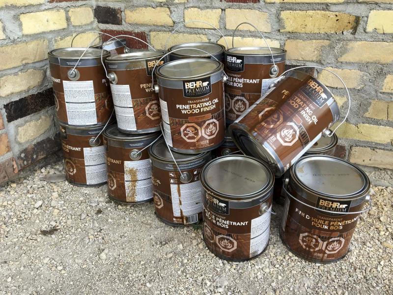 This meant 16 gallons of Behr Deep Penetrating Oil, based on the estimated coverage per gallon listed on the cans. I got 20, to be safe.
