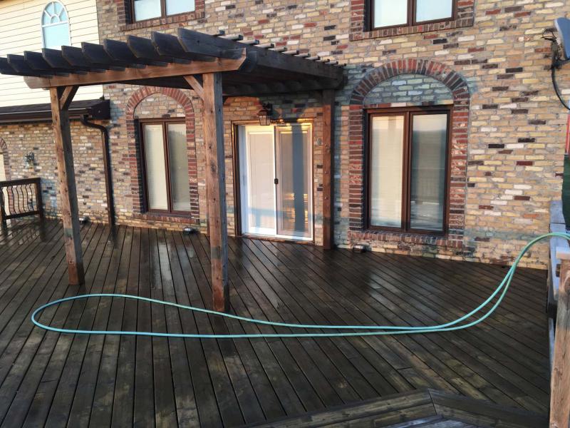 back-deck after being washed with a Zep wood deck pressure wash cleaner, which was left to sit for 15 minutes then rinsed