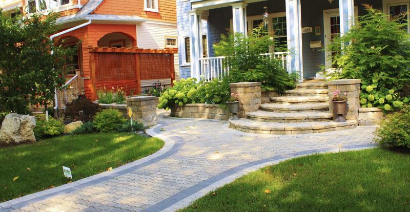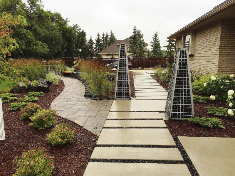Not all projects are complete renovations. An existing design, for example, can be given a facelift. For one client who has a 100-year old character home in an older neighbourhood, Rocke revamped a 30-year-old uni-stone walkway by dressing it up with a border. Stone steps, stone walls and pillars give the home a fresh look. Rocke added a small courtyard with a stone wall and a privacy screen for an intimate, functional use of space.