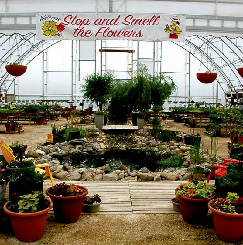 Lorne and Kim Zacharias (no relation) own and operate Morden's Hillside Greenhouses in Morden, with 26,000 square feet of growing space. Enter the 10-metre-high interior of the 40-metre main greenhouse and the stage is set with a huge, centrally located pond surrounded by lush water plants and a backdrop of mature trees, including a magnificent weeping willow. Six smaller greenhouses feed off the main house, each focusing on a theme ranging from herbs, tomatoes and geraniums to hanging baskets, etc. The oniony-peppery scent at the entrance to the herb house is intoxicating.