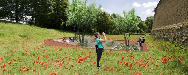 At Le Quesnoy, a commemorative garden in memory of New Zealand soldiers is known as The Assault of the Ramparts, seen in this rendering.