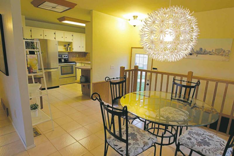 The kitchen, meanwhile, features an efficient, U-shaped design, which along with several other features, make it a highly functional space. "Even though the kitchen is U-shaped, it's actually quite wide, so more than one person can easily work in it at one time without a problem," she said. "There's also plenty of cabinets -- they're original, but in excellent condition. The (terra cotta/bronze laminate countertops are also in great condition, and there's a huge window over the double sink that lets in lots of natural light. There's also a (terra cotta) tile backsplash, and the stainless steel appliances are newer."