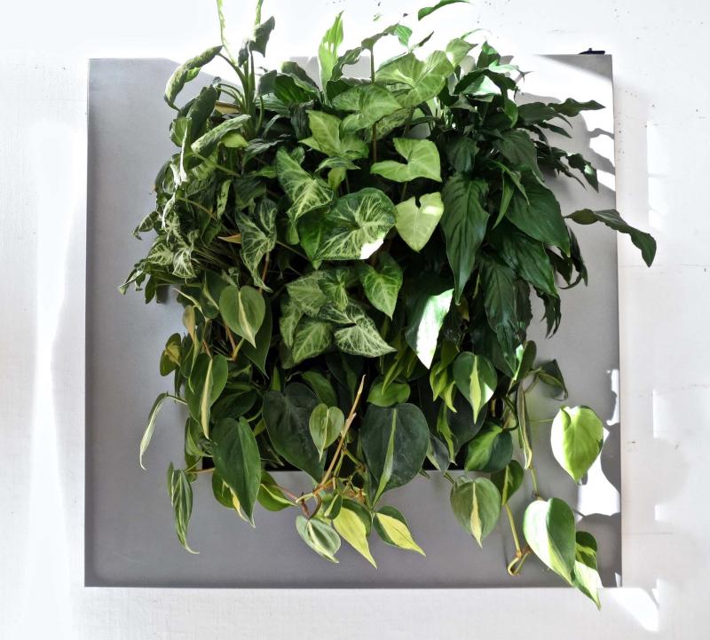 Nikki Bouchier, owner of Off the Wall Greenscapes, and creator of the green wall at the downtown YMCA, offers a frame solution called Live Picture which comes with its own self-watering system.