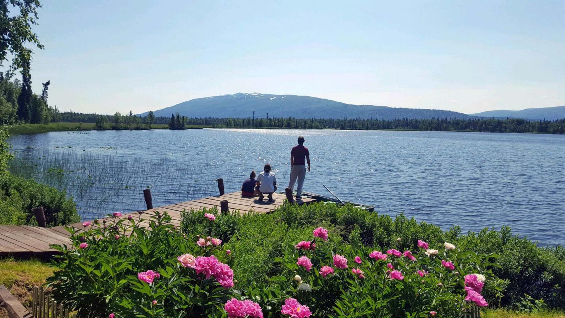 Their rigorous, authentic life includes no street lights, no electric lines or telephone poles, and no roads. During the long days of summer, travel is strictly by air, but in a typical winter, they rely on travel by air and snow machine. Since they have no indoor plumbing, they utilize an outhouse and outdoor shower house — even in winter. There are chickens to feed each day, wood to chop, moose to hunt, huge volumes of snow to clear from paths and trails, and next year’s peony season to get ready for.