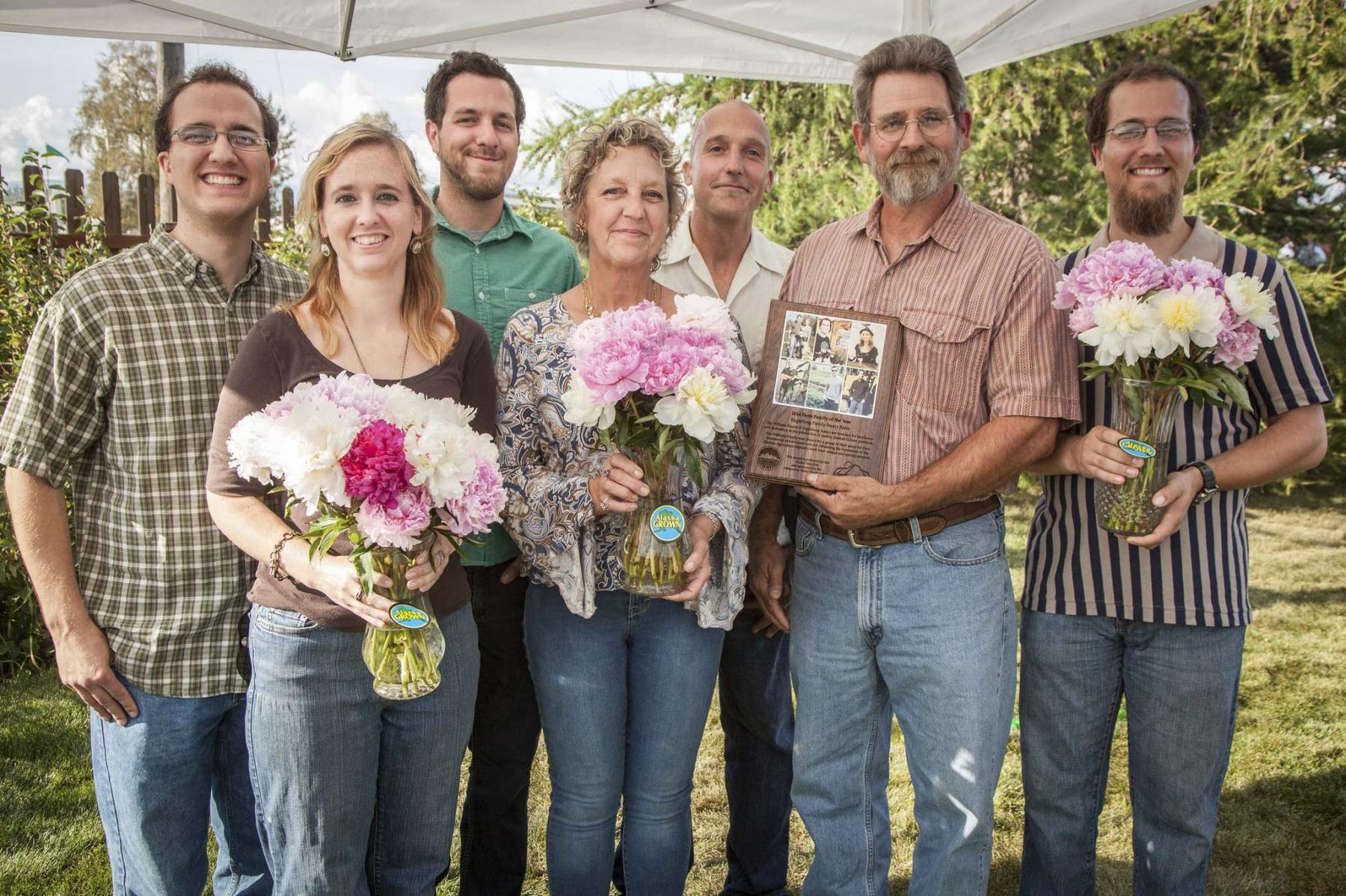The couple owns EagleSong Family Peony Farm. Their picturesque, five-acre peony farm sits on 38 acres of land in the bush 64 kilometres northwest of Anchorage, Alaska. The view out their front door is dominated by Mount Susitna.