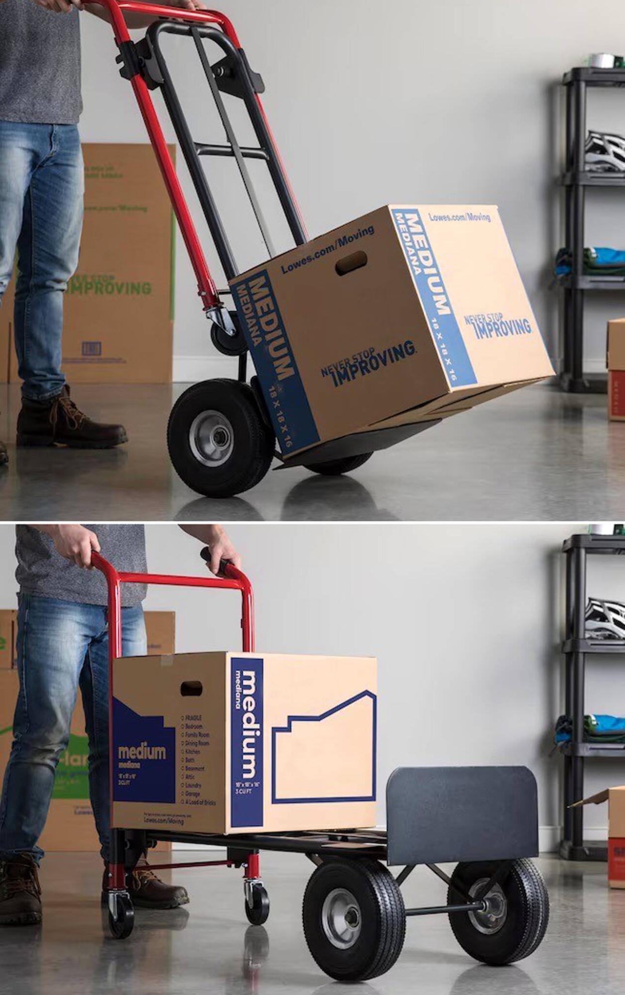 To my delight, a particular dolly caught my eye — the Milwaukee 800-lb convertible dolly, which offers the traditional two-wheel dolly option and, with the flip of a lever, converts to a four-wheel platform dolly. Without hesitating, I purchased the dolly and made my way to the condo.
