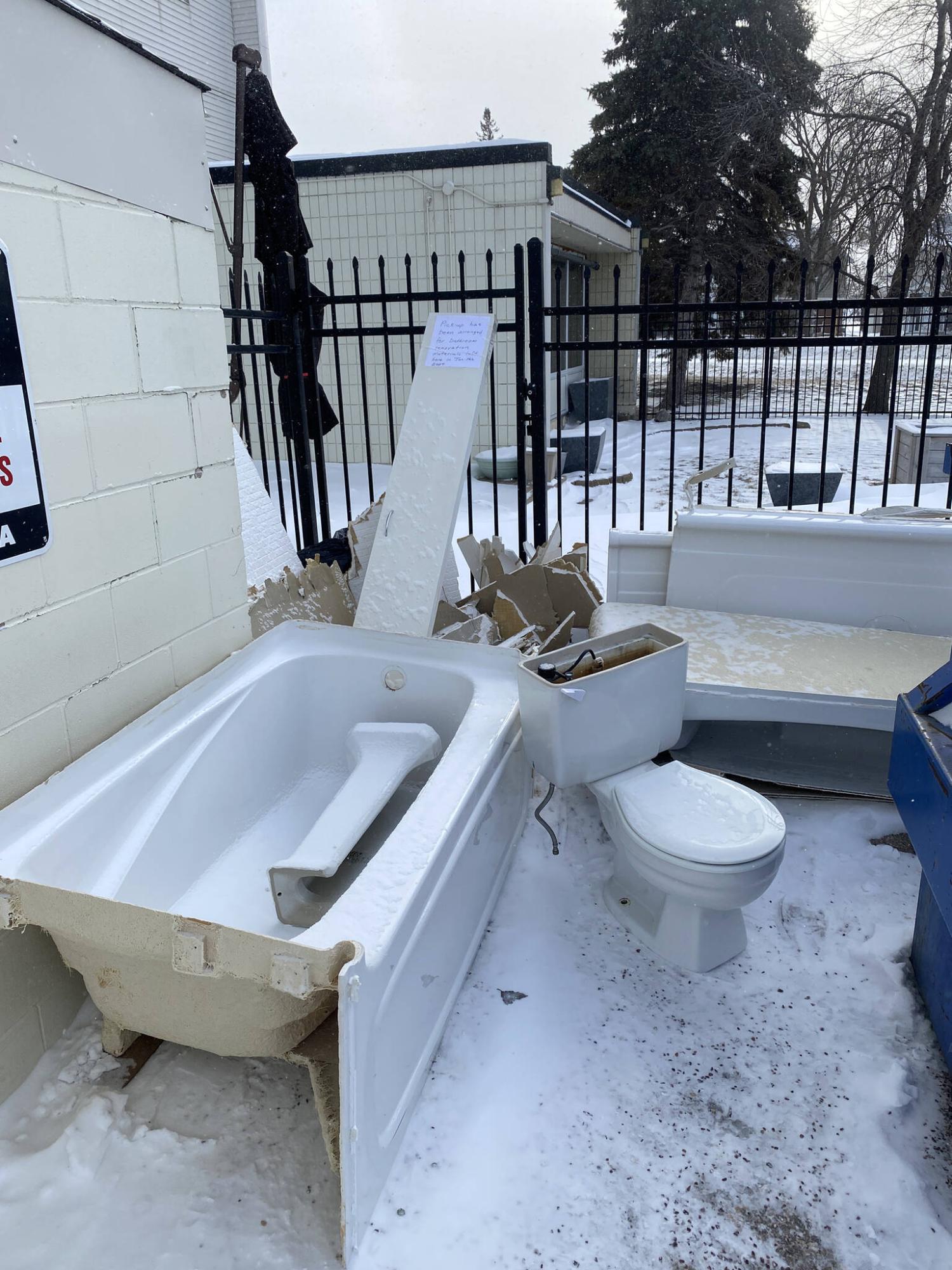 When the bathroom remodel was first proposed, it became clear from the onset that there would be a series of hurdles, primarily with the renovation itself; the electrical and plumbing modifications alone would require the appropriate commercial permits, installation by certified technicians and subsequent inspections which may inherently cause unexpected delays. Although these tasks would eventually be tackled, an earlier aspect of the project had eluded me until the initial demolition process began — what was the most efficient and convenient way to remove the demo’d elements of the old bathroom, before the actual renovation process could begin?