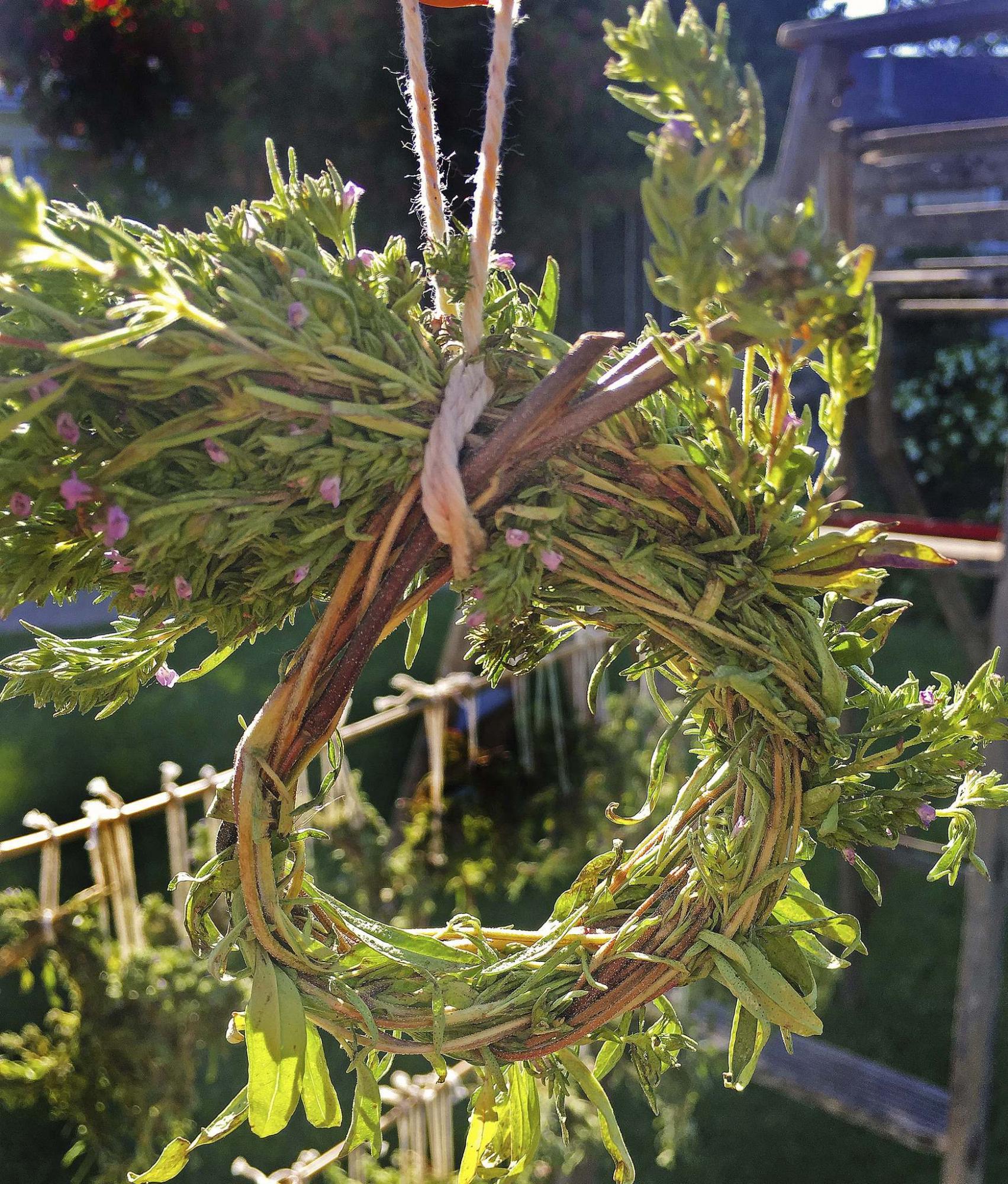 Neufeld grew summer savory this year, which she braided into wreaths or soup rings and dried on a wooden ladder. It was easy to braid the savory, she says. "The soup rings add incredible flavour to soup recipes," Neufeld says.