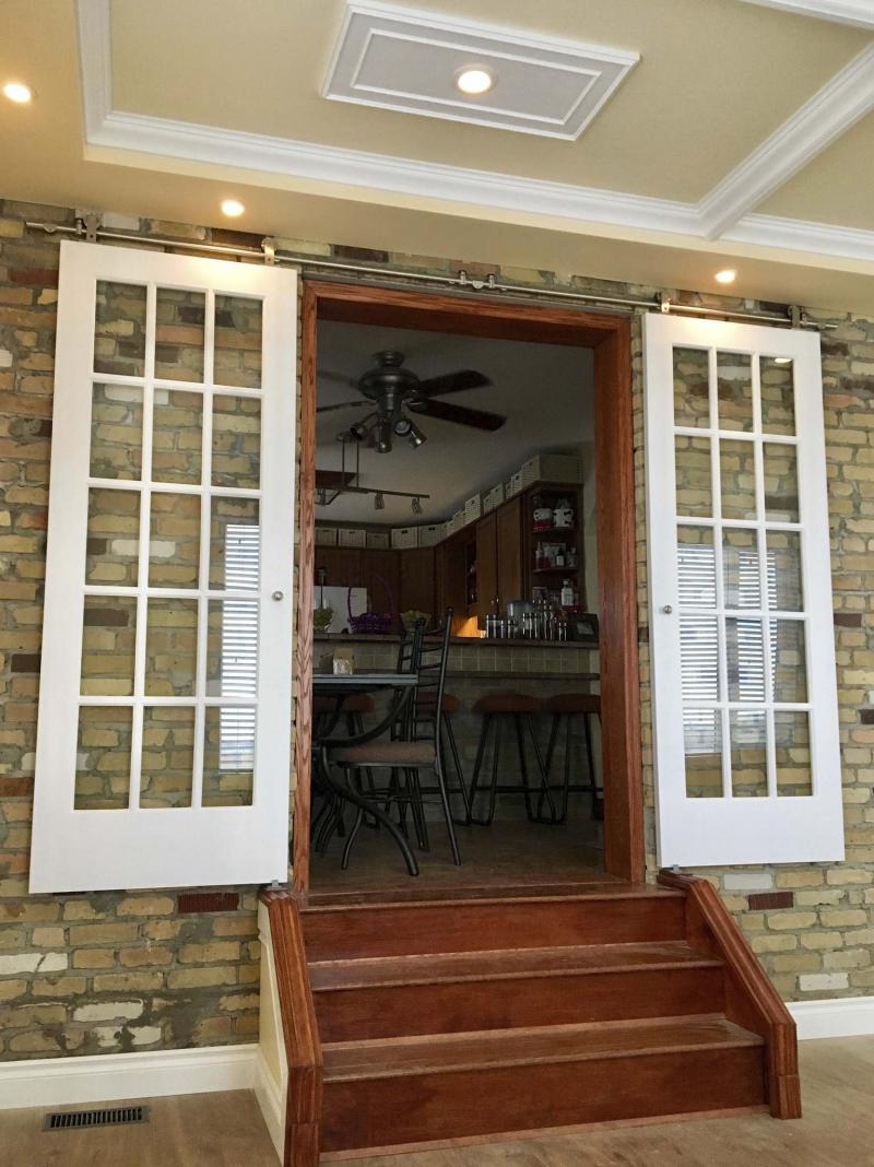 Although barn-style sliding-door mechanisms weren’t new to me, installing them as two sets of tandem doors cut to custom length and anchored to brick seemed a daunting prospect.